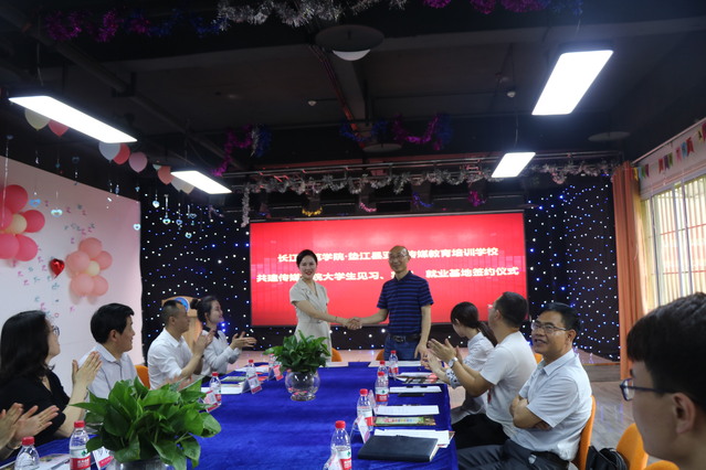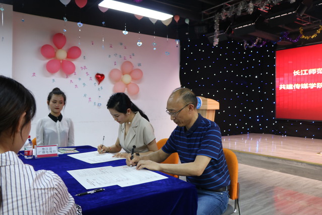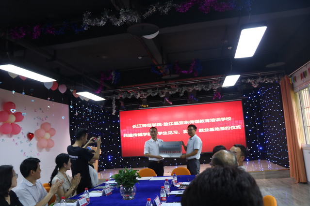 最后,由韦济木院长和尚博校长签署长江师范学院、垫江县亚东传媒教育培训中心共建一本道 大学生见习、实习、就业基地合作协议书;由肖云久书记为“一本道 大学生见习、实习就业基地”授牌。