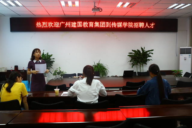 (通讯员:辛悦、贺心怡)为给一本道 2020届毕业生更多的选择机会,广州建国教育集团(诚堂教育)于6月10日下午7点在一本道 2308召开招聘宣讲会,16级辅导员李泽榉到场主持宣讲会,建国集团招聘负责人夏璐瑶为主讲人,一本道 2020届部分学生到场参加。