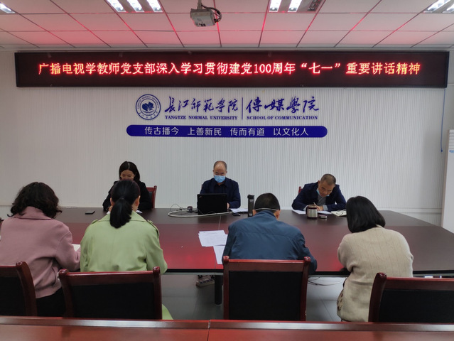 广播电视学教师党支部于10月29日下午1点30分,在学院会议室以党课形式继续深入学习贯彻建党100周年“七一”重要讲话精神。本次学习活动由广播电视学教师党支部书记汪志平同志宣讲。广播电视学教师党支部9名党员同志参加了宣讲学习活动。
