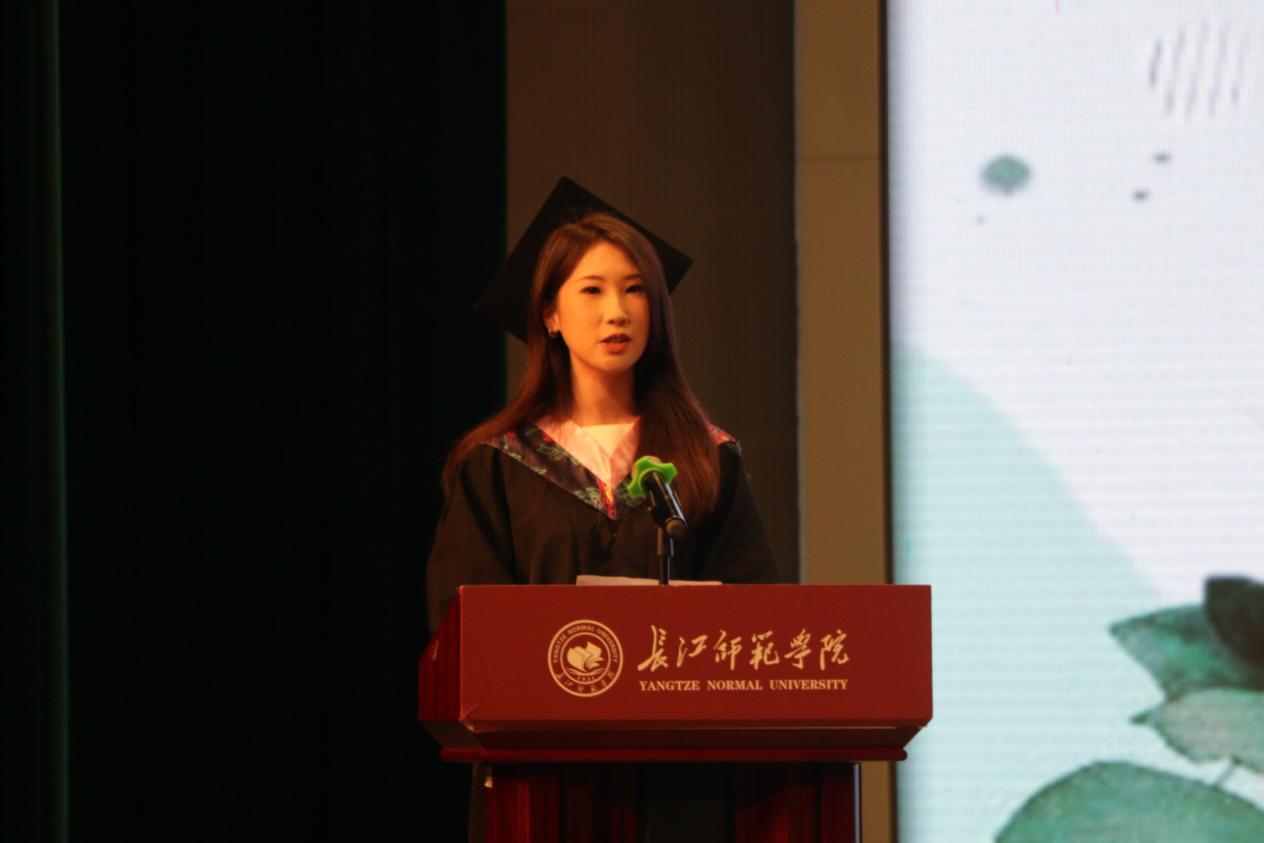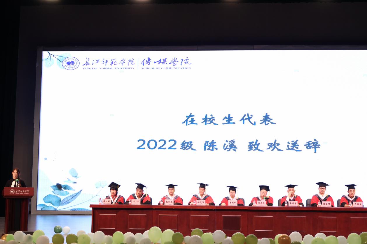 在校生代表2022级陈溪致欢送辞,她代表全体在校生向毕业生们表达了最真挚的祝福和感谢。陈溪同学表示,毕业生们用他们的努力和才华,为在校生们树立了榜样,也让她们感受到了一本道 的力量。