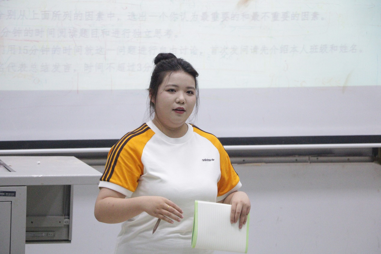 接着是无领导小组讨论环节,各个候选人围绕给定的议题进行了热烈讨论,候选人将不同的想法进行碰撞,充分展现了他们的团结协作能力和自身的创新思维。其中,何姿璇作为代表发言,阐述了个人的观点,她认为“处事公正且能坚持原则又不失灵活性”是最重要的因素。