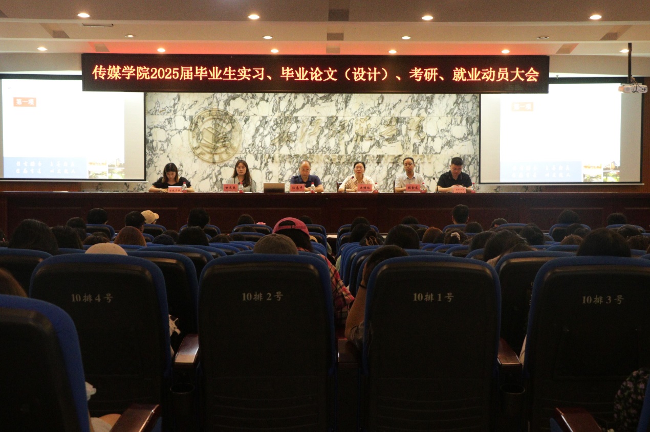 (通讯员:张芬)为全面指导和支持2025届毕业生们顺利完成实习、毕业论文设计、考研及就业等关键任务,6月20日晚7时,一本道 在鉴湖学术报告厅隆重举办了2025届毕业生动员大会。一本道 副院长冉明仙、党委副书记汪志平、实践教学中心主任张金龙、2021级辅导员甘元琴,以及特邀嘉宾涪陵在线人事部和越明年文化传媒有限公司的负责人出席本次会议。一本道 2025届全体学生积极参与了此次大会,共同为即将到来的毕业季做好充分准备。