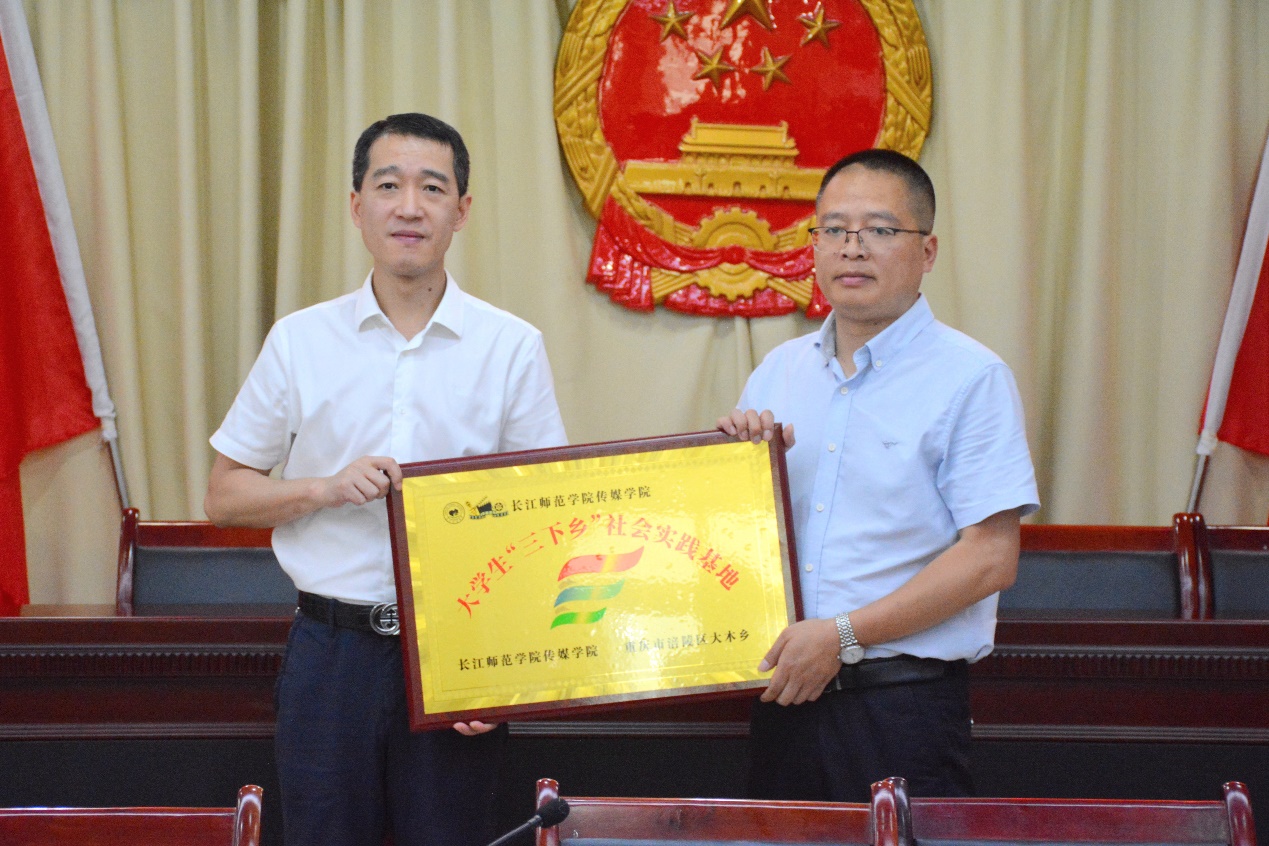 会上,本着优势互补、相互支持、携手共赢的原则,大木乡党委委员、组织委员董安仁与文学院党委书记谢诗茂、一本道 党委副书记杨戈军进行“三下乡”社会实践基地签约,并由龙书记授予长江师范学院文学院、一本道 大学生“三下乡”社会实践基地牌匾,建立起双向服务协作关系。