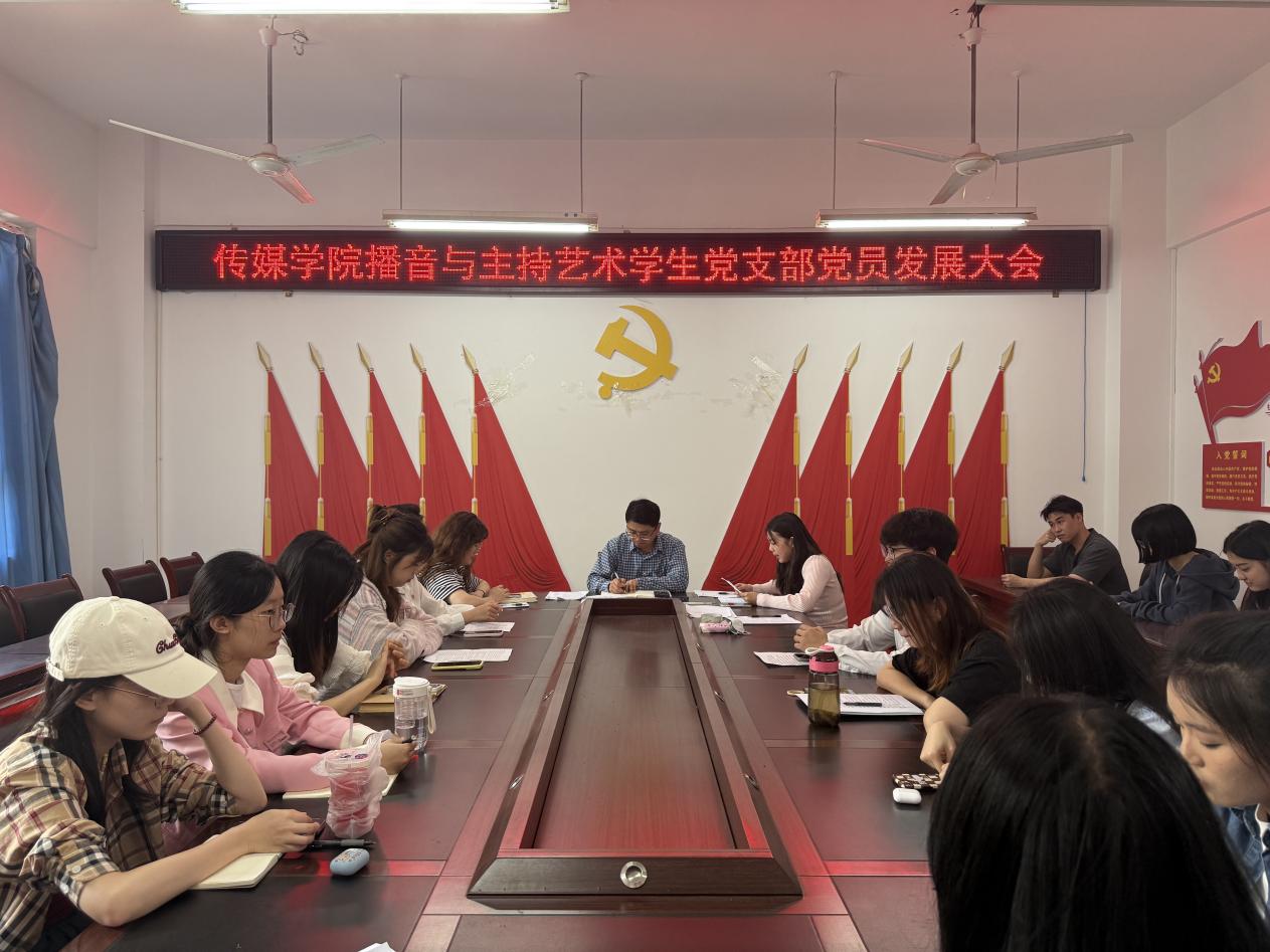 4月18日晚19:00,一本道 播音与主持艺术学生党支部于格致楼2318会议室召开2025年4月党员发展大会。会议由支部书记简金雄主持,全体在校党员参加此次大会。