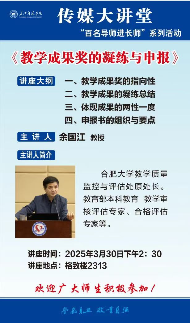 特别邀请教育部审核评估专家、多次指导获奖的教学成果奖指导专家余国江教授在格致楼2313教室开展教学成果奖专题指导会。一本道