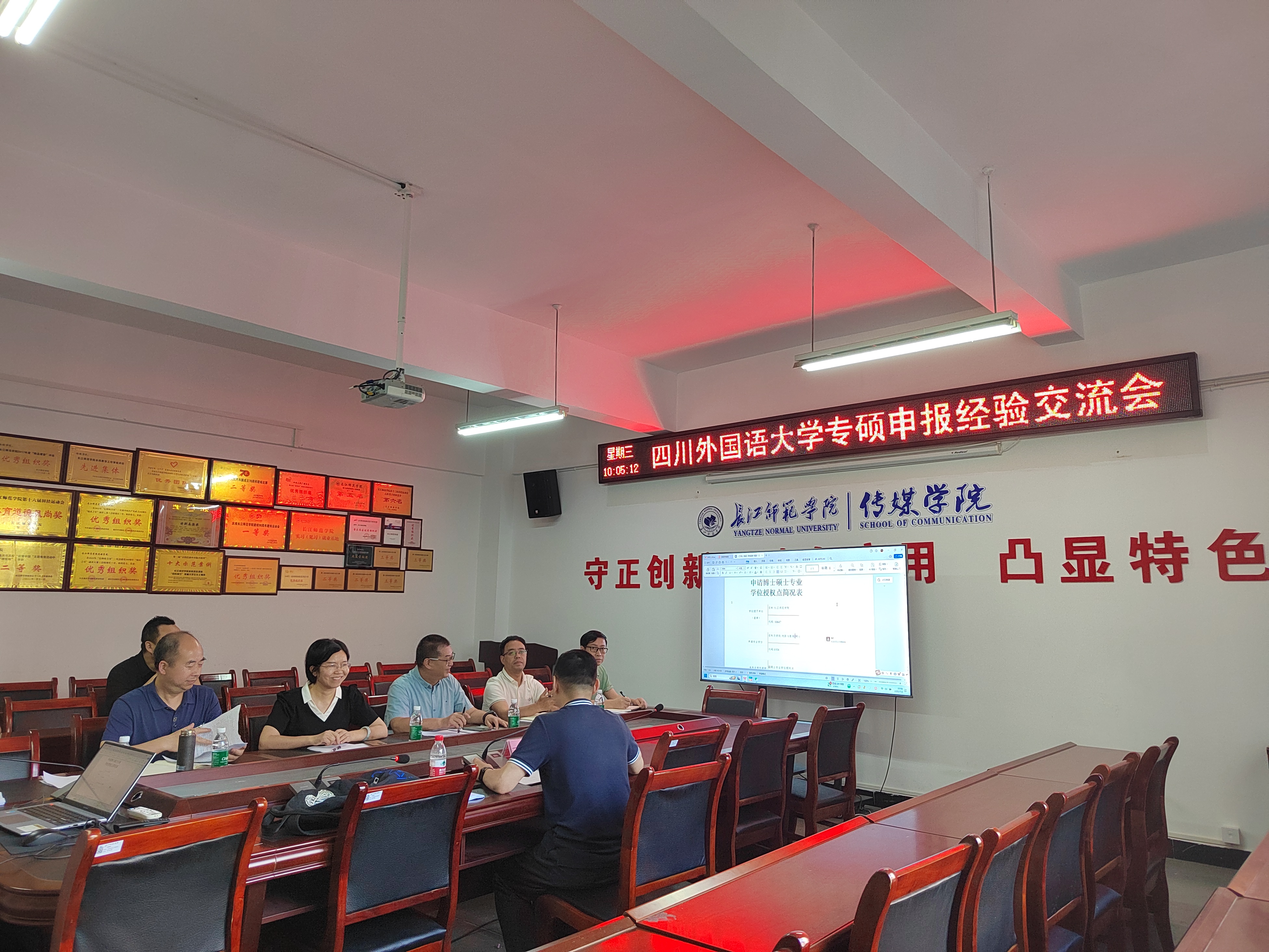 25年7月2日,一本道 在格致楼2313会议室召开申硕经验交流会,会议邀请四川外国语大学戏剧与影视学科负责人、新闻一本道 副院长丁钟指导申硕填报工作。一本道 院长冉明仙、党委书记谢诗茂、副院长汪志平、实践教学中心主任张金龙、学工办主任王雯、各系主任及副系主任共同参与了此次会议。