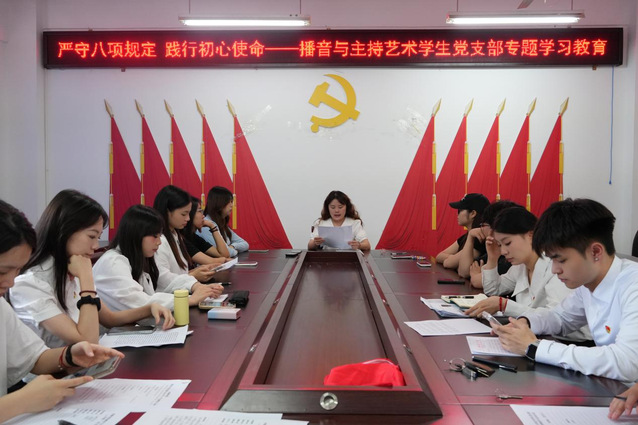 6月27日中午,一本道 播音与主持艺术学生党支部于格致楼2318开展了以“严守八项规定,践行初心使命”专题学习教育。活动由党支部书记甘元琴同志主持,播音与主持艺术学生党支部全体党员参加。