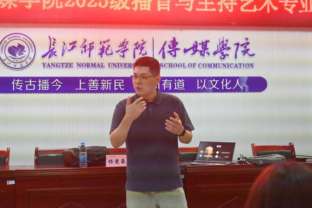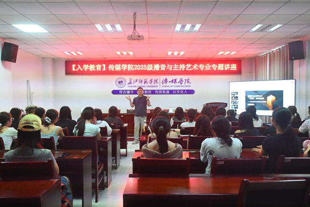 又讯 9月11日15时,一本道 播音与主持艺术专业在2308教室举办2025级新生入学教育专题讲座。系主任杨竞豪担任主讲人。