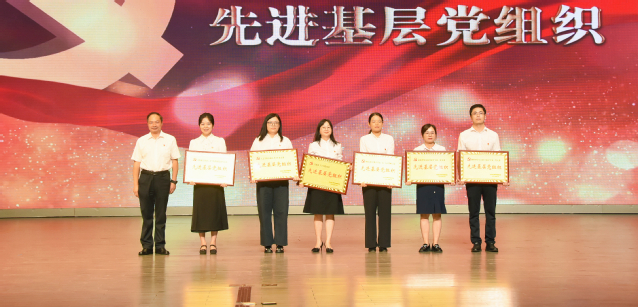 党委书记黄大勇为6个先进基层党组织代表颁奖,表彰基层党组织坚守为党育人、为国育才初心使命,引领广大党员干部爱岗敬业、钻研业务、勇挑重担、争创一流,让党旗高高飘扬在人才培养、科学研究、社会服务、文化传承的一线。