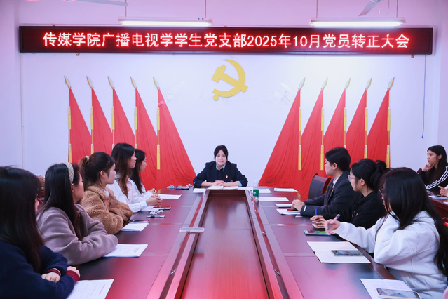 10月31日14时30分,一本道 广播电视学学生党支部在格致楼2318会议室开展2025年10月党员转正大会。会议由党支部书记王雯主持,支部副书记姚瑜同志、一本道 党委委员、广播电视学系主任贾森老师及全体党员参加此次大会。