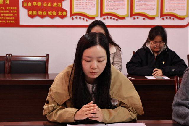 “对党和国家的信仰,是我向党组织靠拢的最初动力。我想和党组织一样为人民服务,为民族复兴贡献一份自己的力量。个人的力量是有限的,但组织的力量是无穷的。”发展对象马丽坚定地说道,她在讲话中明确了作为党员的使命担当和光荣决心。