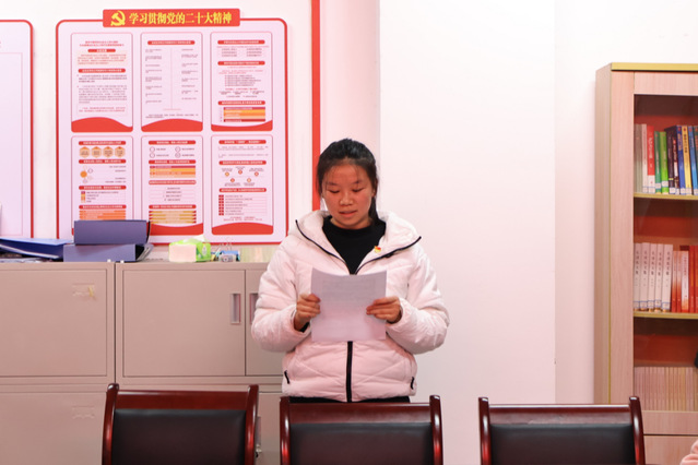 向雨婷同志在汇报中回顾了在预备期间在思想、学习、创新创业和工作实践四个层面的基本情况,她表明自己将始终以党员标准严格要求自己,坚定理想信念,紧跟党的步伐,以实际行动践行初心使命。针对自身存在的不足,向雨婷同志进行了深刻剖析,并提出了明确的改进方向。
