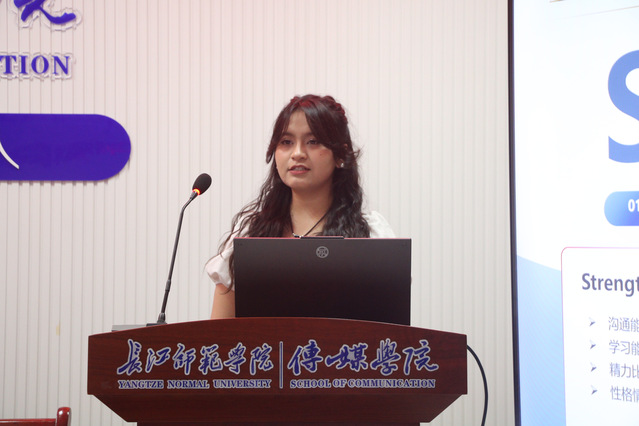 决赛共12名选手参赛,选手们按照“自我认知—职业分析—目标设定—实施计划—评估调整”的逻辑框架,结合传媒行业动态与自身优势,逐一呈现职业规划方案。二号选手阿依娜扎尔·阿迪力来自新疆,她立足家乡文旅产业发展需求,确立了成为文化宣传员的职业目标,希望通过专业能力推广家乡特色文化。三号选手蒋语嫣从宏观行业趋势与微观岗位需求两方面分析职业环境,制定了兼具可行性与针对性的行动计划,稳步推进职业目标落地。
