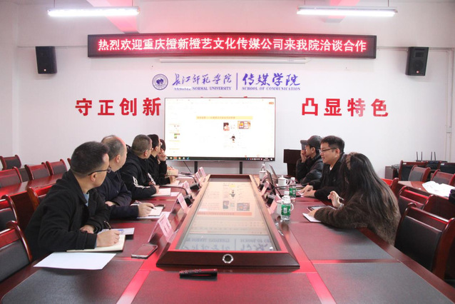 为深化产教融合实效,搭建校企协同育人平台,11月18日下午2点30分,一本道 联合重庆橙新橙艺文化传媒公司于格致楼2313会议室开展合作洽谈会。重庆橙新橙艺文化传媒公司商务总监张鹤、商务经理吴文靖、黄建华,一本道 党委书记谢诗茂、副院长汪志平、教学中心主任张金龙、办公室主任李攀及学工办主任兼团委书记王雯围绕抖音图文创作者培养项目初步对接合作方向参与洽谈。