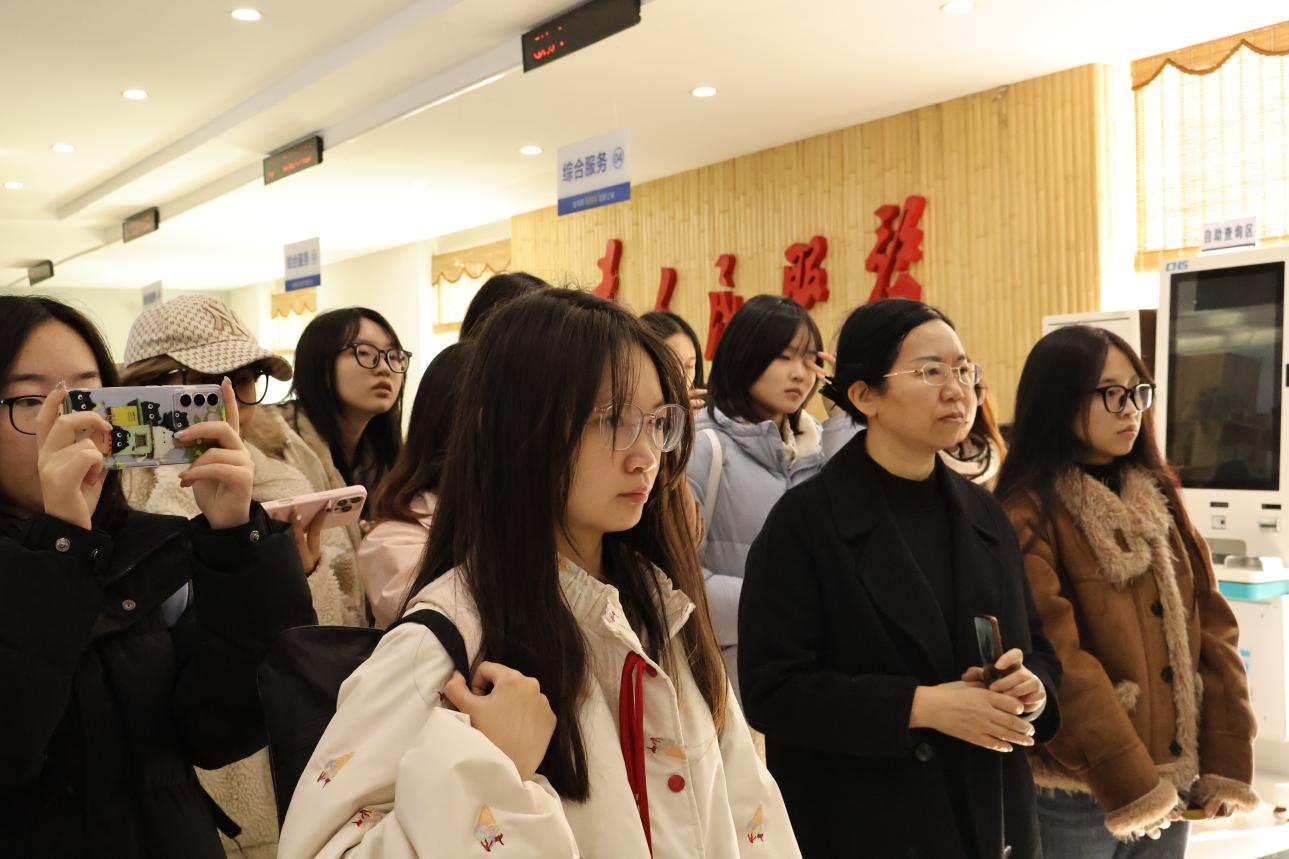 走进包鸾镇便民服务中心,工作人员向冉明仙院长一行人详细介绍了中心的服务职能、办事流程及数字化服务举措——从社保办理、惠农政策咨询到乡村振兴项目申报,中心通过“一站式”服务、线上线下联动的模式,切实解决村民办事“多跑路”的问题。随后,在工作人员组织下师生们一同观看展现包鸾镇自然风光和人文特色的文旅宣传片。宣传片全方位呈现了包鸾镇近年来立足生态禀赋、推动农文旅融合发展的乡村振兴生动实践,为同学们专业实践提供了丰富的素材库。同时,也启示同学们用更贴近基层、贴近群众的视角,打造符合“四有”要求的融媒作品,真正用专业所长讲好包鸾镇的乡村振兴故事。
