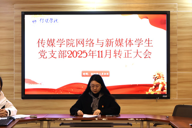 大会最后,谭喻同志对郑玉婷同志按期转正表示了热烈祝贺。她指出,郑玉婷同志在预备期间始终以党员标准严格要求自己,思想上求进步、行动上敢担当,圆满完成了预备期的学习和实践任务,此次转正既是对她过往表现的肯定,更是对其未来履职尽责的新要求。谭喻同志还强调,作为网络与新媒体专业的青年党员,要始终牢记党员身份与时代使命,把政治理论学习成果转化为专业实践的动力,立足专业所长传播好党的声音、讲好发展故事;要以转正为新起点,持续强化先锋意识,在学业钻研、志愿服务、专业实践中发挥模范带头作用,以实际行动践行初心使命,为支部建设、专业发展乃至国家发展大局贡献青年党员的智慧和力量。