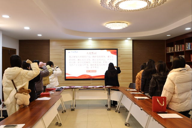 最后,由谭喻同志领誓,支部全体党员同志共同重温入党誓词。全体与会党员面向鲜红的党旗,高举右拳,庄严宣誓,重温对党忠诚的誓言,坚定对党的信仰。