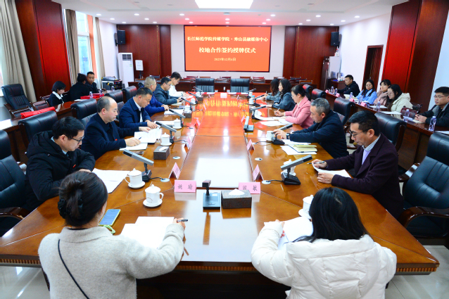 签约授牌仪式上,吴文介绍了长师的办学历史、特色优势、近年来取得的发展成就、相关专业设置以及创新人才培养机制。他强调,学校始终坚持立足地方、服务社会的宗旨,期待与秀山县融媒体中心围绕“共建实践教学基地、共育行业急需人才、共享资源协同创新、共促人员交流互聘”等重点方向,建立长期、稳定、深入的合作关系,实现校地双方互利共赢,共同为区域经济社会发展贡献力量。