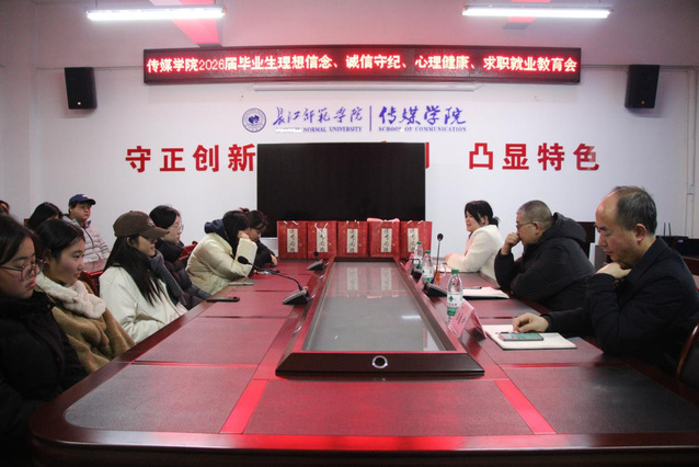 为全面护航2026届毕业生成长,引导学子坚定理想、严守纪律、健康备考、科学规划,12月10日下午2点,一本道 于格致楼2313召开理想信念、考研诚信守纪、心理健康、求职就业教育会。传媒学院党委书记谢诗茂、副院长汪志平、学工办主任兼团委书记王雯出席本次大会。