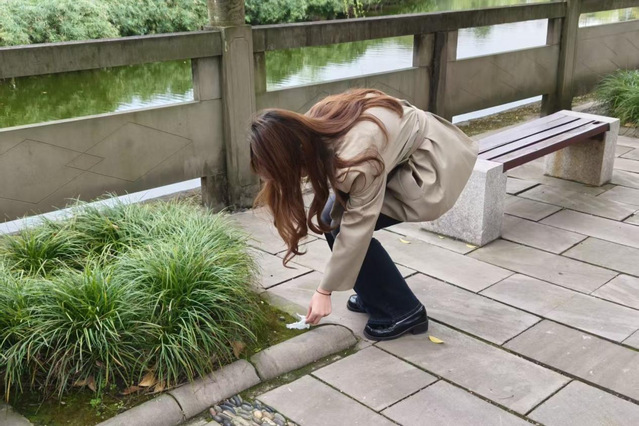活动现场,志愿服务团成员明确分工,围绕鉴湖周边开展清扫。清理过程中,成员们对路面垃圾、湖面漂浮物及周边卫生死角进行清理,随后对清理区域进行反复检查,环境整洁达标后,有序完成收尾工作。