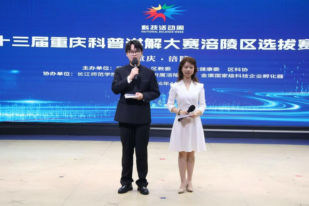 4月8日下午,第十三届重庆科普讲解大赛涪陵区选拔赛决赛在一本道 演播厅顺利举行。本次大赛由重庆市涪陵区科学技术局、重庆市涪陵区教育委员会、重庆市涪陵区卫生健康委员会、重庆市涪陵区科学技术协会联合主办、长江师范学院、重庆大学附属涪陵医院、重庆市涪陵区金渠企业孵化器有限公司协办。