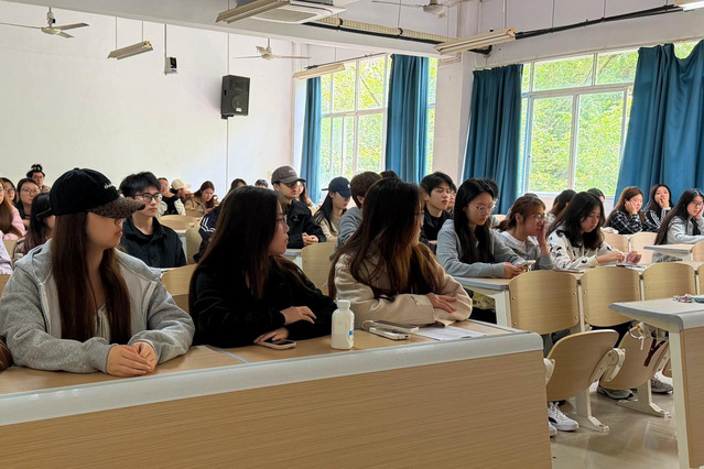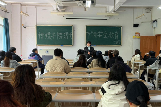 宣讲时,王雯老师讲解清明假期安全注意事项:强调出行安全、遵守交规、增强自我保护;结合祭扫传统,倡导文明绿色祭扫,提醒遵守防火规定、远离野外危险区域;还提醒宿舍用电安全与防范电信诈骗,叮嘱提高防范意识、保护个人信息与财产安全。